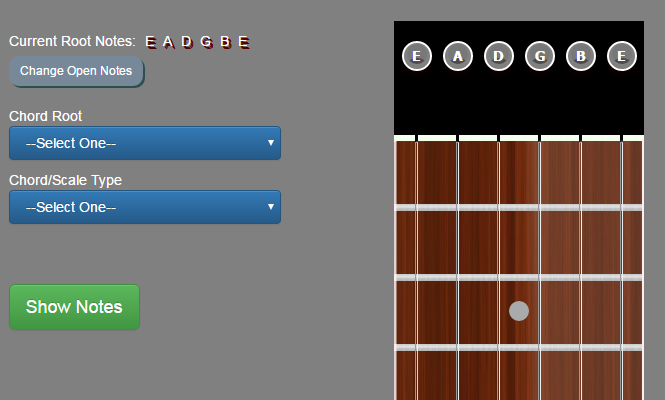 Taking into account that not all players play in standard tuning (EADGBe), Find Notes has the option to change the guitar's root notes.