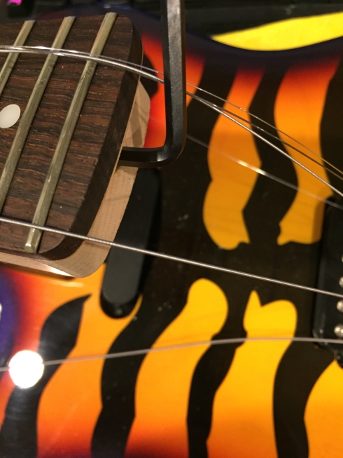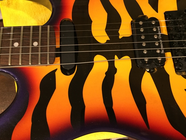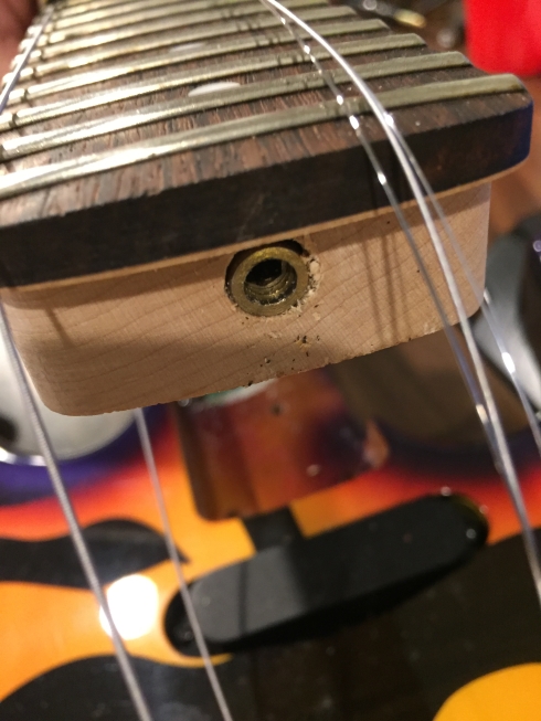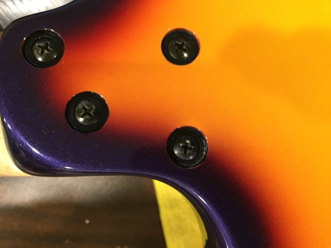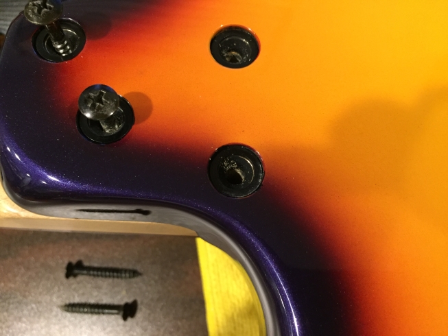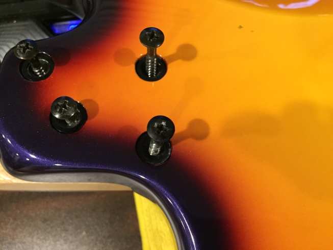 At this point, the strings are completely slackened. Time to remove the screws. Turn the guitar over to access the screws.