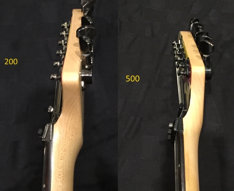 The Neck contour, near the headstock is different. The 500's contour is rounder, and the 200 is bulkier. Will you really notice it? Probably not, but it's there.