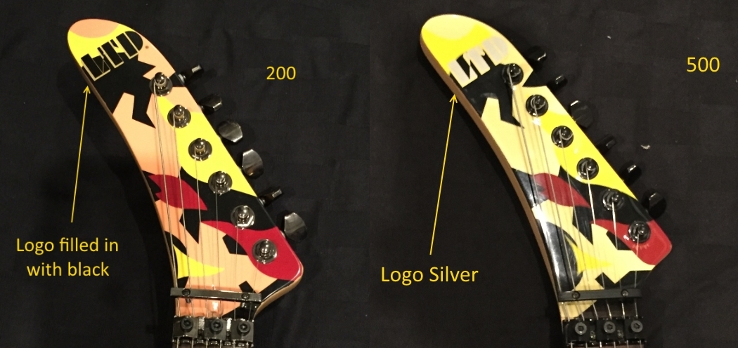 The headstock logo is different. The LTD logo on top of the 500 is silver, the 200 is black with gold outline.