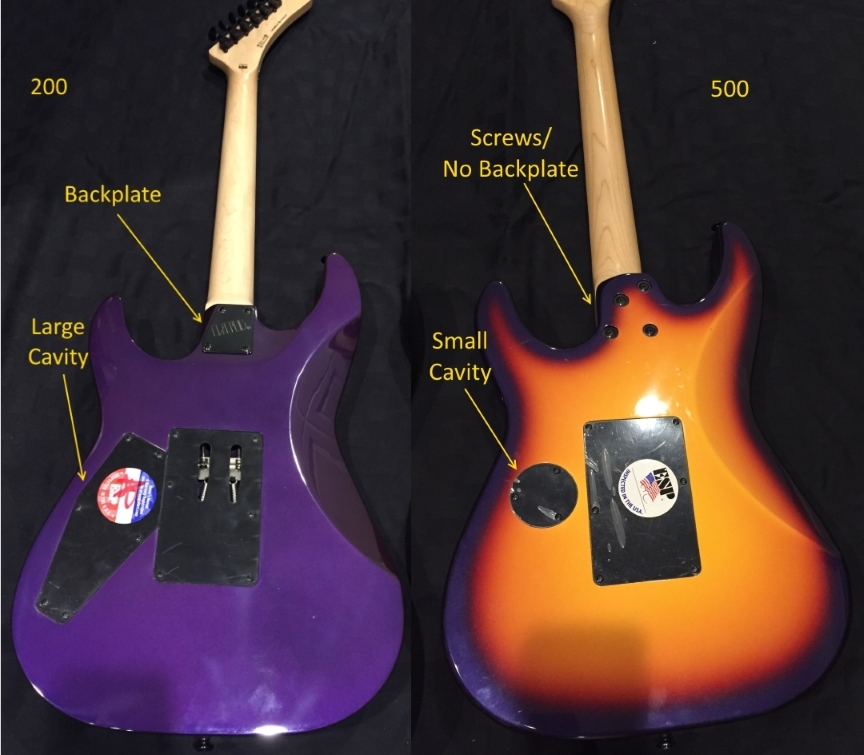 Just like the Kamikaze, the 200 has a backplate and large cavity. The 500 has no backplate and a small cavity.