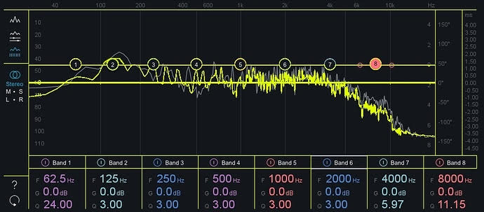 I then checked the EQ of each of the tracks using Ozone. I set the Ozone EQ points to each of the points on my MXR 10-band EQ. To my amazement, there was very little difference, less than 1db, on each of the points.