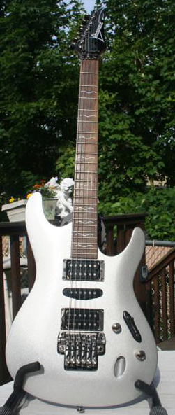 I bought a Silver metalflake Ibanez 470S off of Craigslist. The guitar was in good shape, but had a chip in the paint on the bottom corner of the guitar. At first, I tried to fix it, but couldn't get an EXACT match. Since it wasn't exact, it bothered me. So, I decided to strip it and paint it.